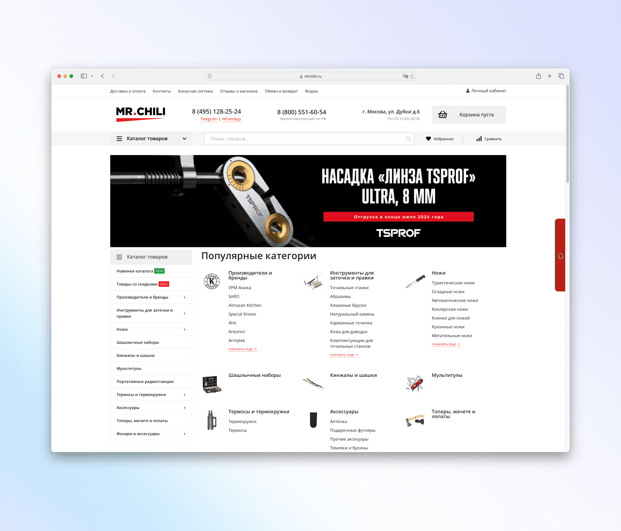 Цель рекламной кампании — увеличение продаж ножей и сопутствующих товаров через интернет-магазин mrchili.ru.